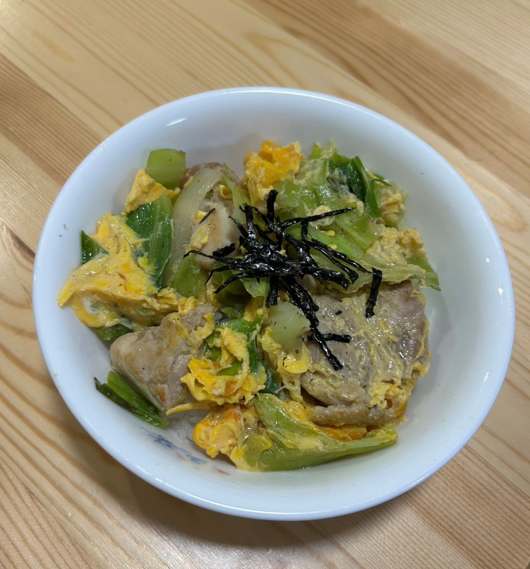 ④溶き卵を流し入れ、ふたをしてお好みの固さになったら火を止める。
